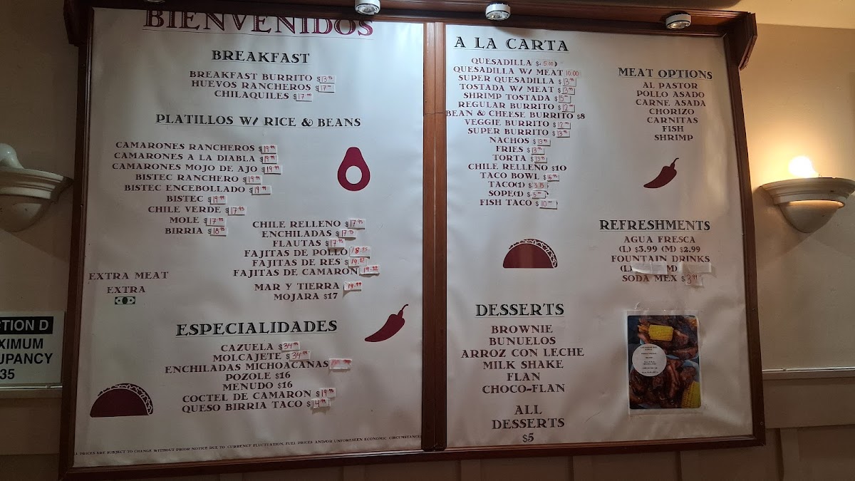Shrimp cocktail with onion, cilantro, cucumber, tomato, avocado. Jalapeños, ketchup, and tapatio